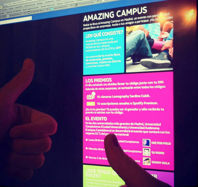 Muy contentos porque este viernes de 11h a 14h estaremos Amaia Arrazola y yo en el Amazing Campus, que monta Nokia con motivo del lanzamiento de su nuevo Nokia Lumia800. ¿Dónde? en la Universidad Autónoma de Madrid.